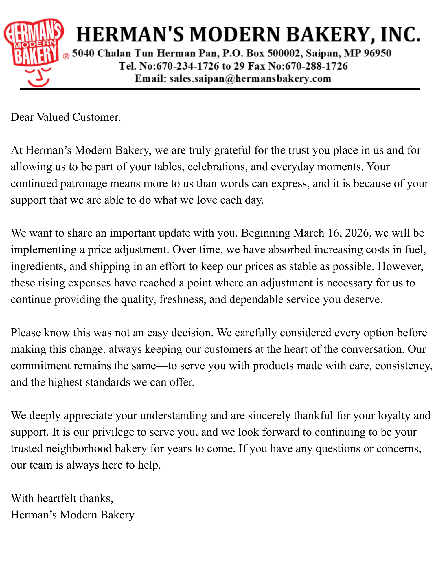 On the island of Saipan, where traditions and flavors harmonize, Herman's Modern Bakery was born from a passionate confluence of family heritage and a love for baking.